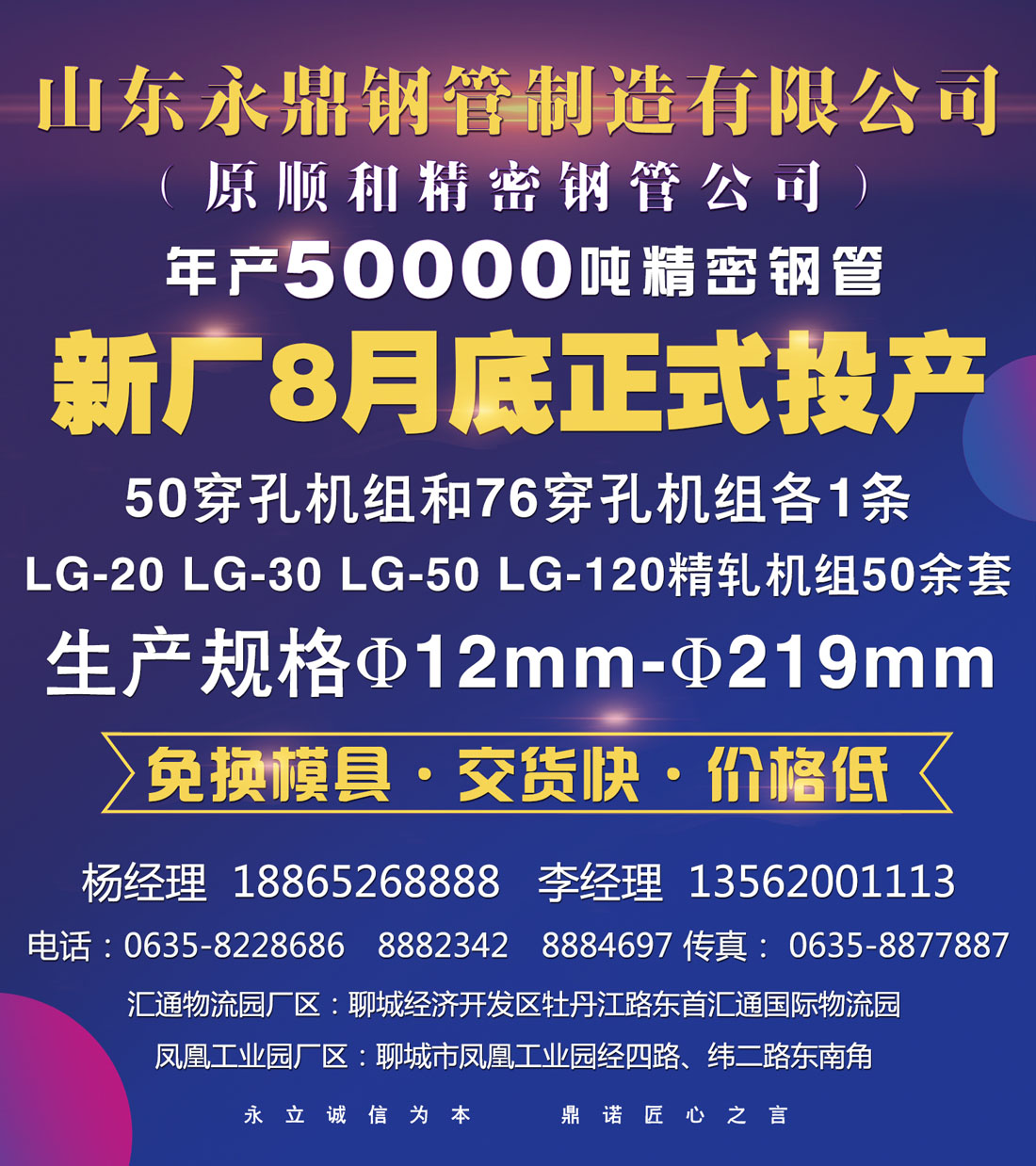 山東昌衡信德年產50000噸精密無縫鋼管8月底正式投產